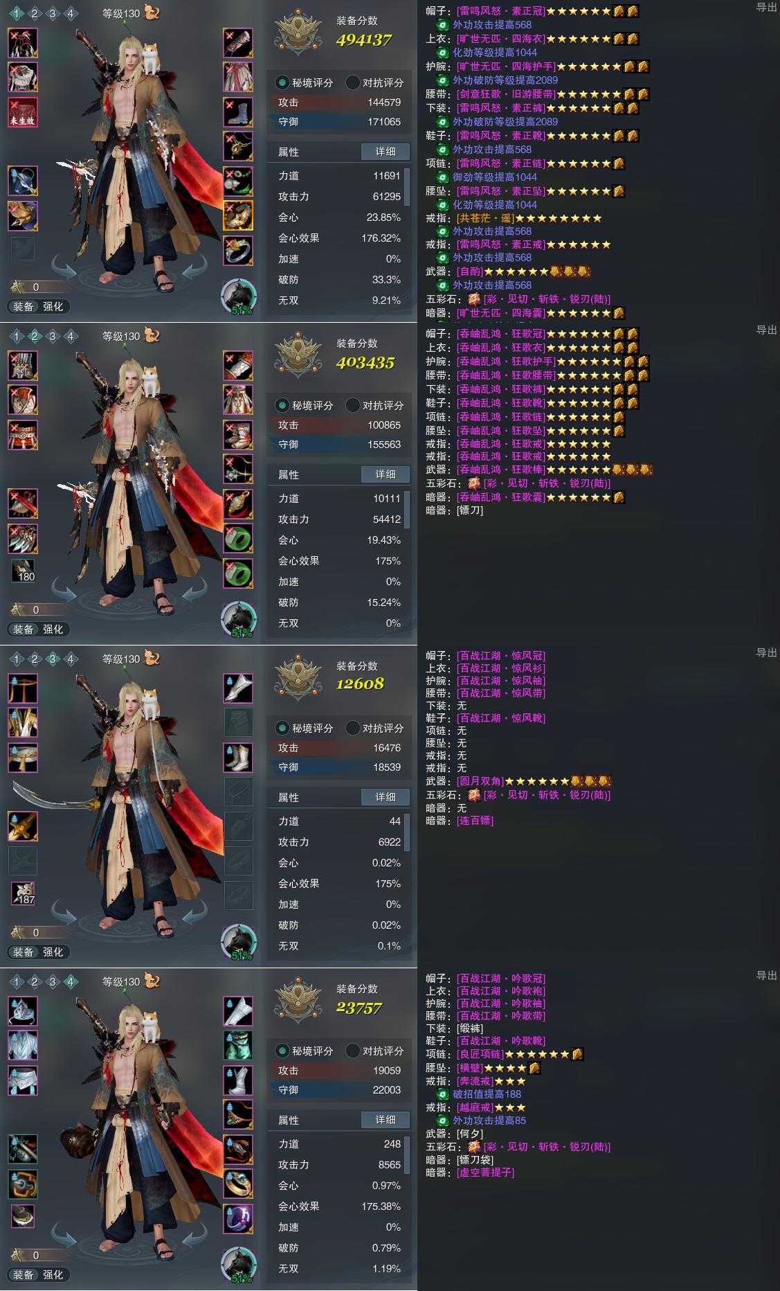 【装备】130级,笑尘诀PVP494137,笑尘诀PVP403435,装备三12608,装备四23757