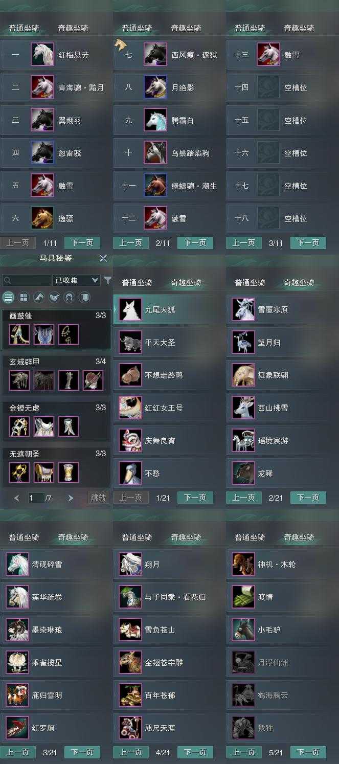 【坐骑】13个[西风瘦逐狱, 青海骢黯月, 红马, 乌鬃踏焰驹]