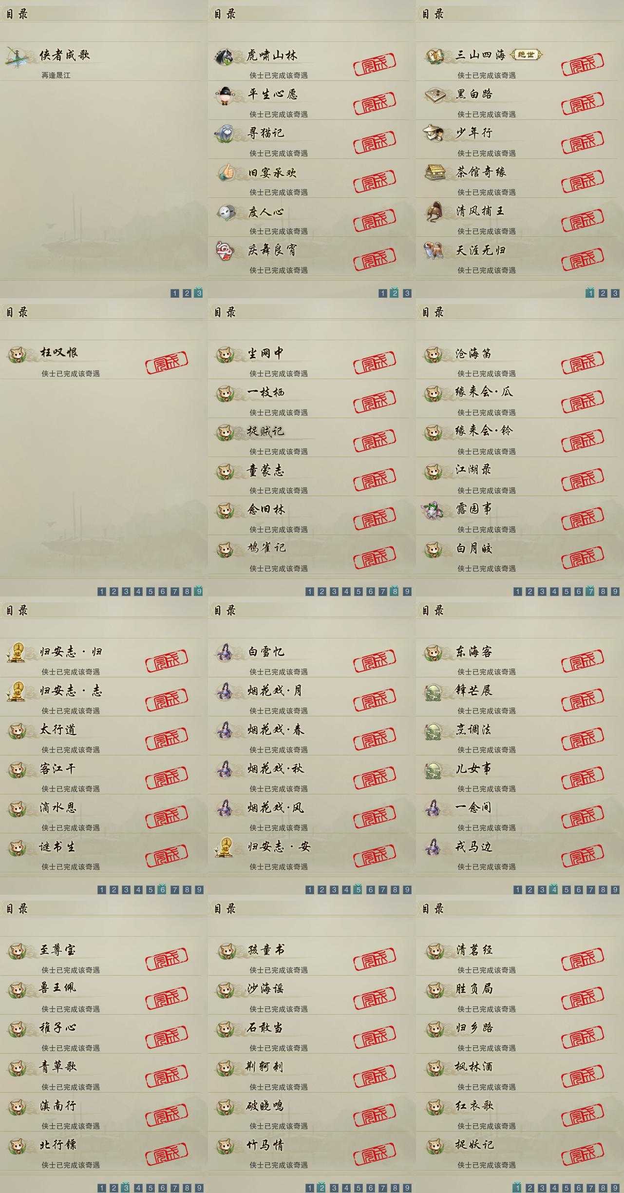 【奇遇】13个[三山四海, 天涯无归, 平生心愿, 黑白路, 虎啸山林, 少年行, 清风捕王, 寻猫记, 茶馆奇缘, 庆舞良宵, 度人心, 旧宴承欢, 侠者成歌]
