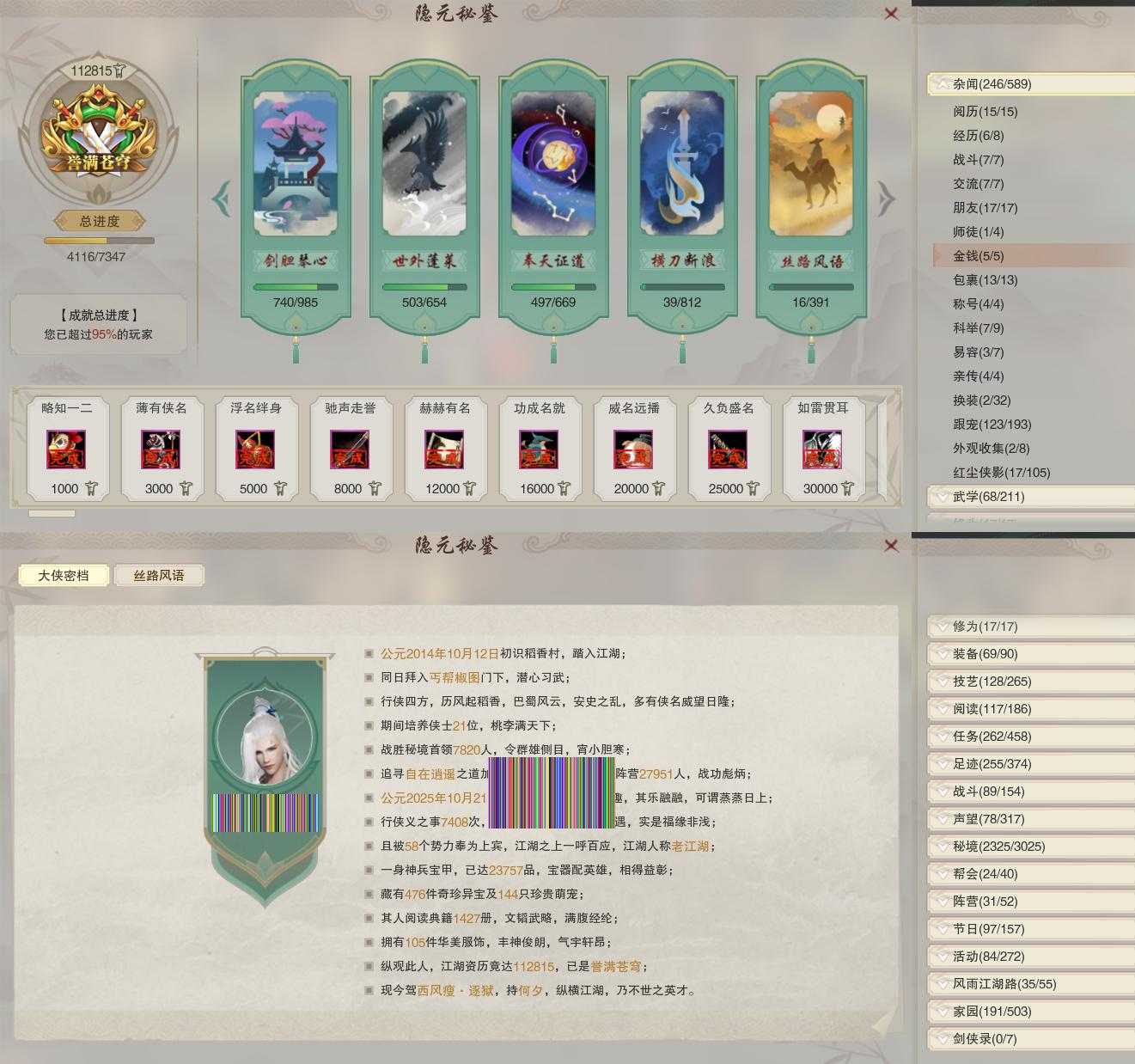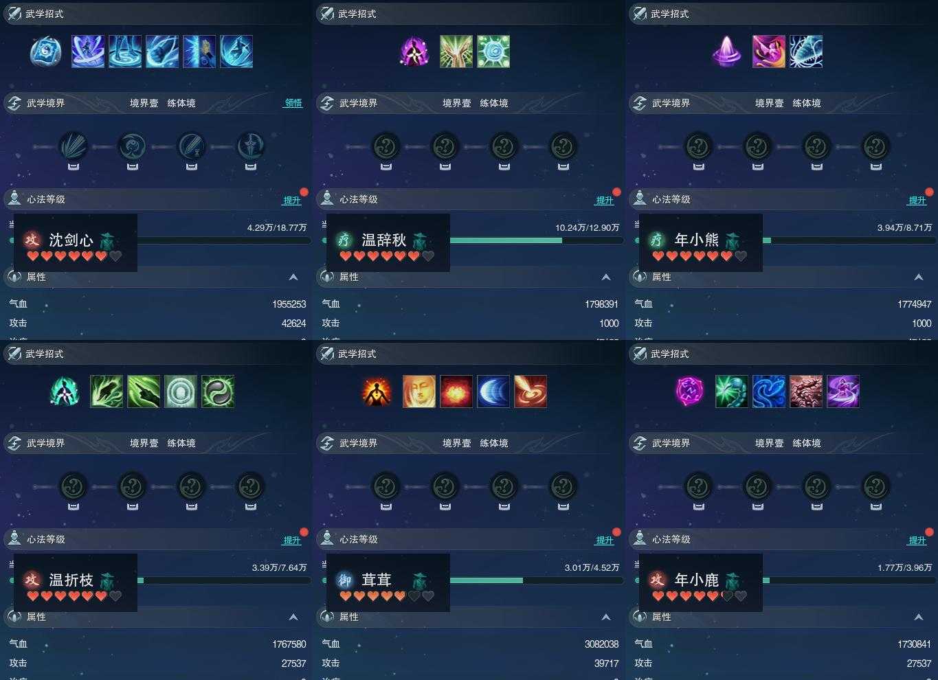 【同伴】沈剑心73级境界壹,温辞秋69级境界壹,年小熊66级境界壹,温折枝65级境界壹,茸茸61级境界壹,年小鹿60级境界壹