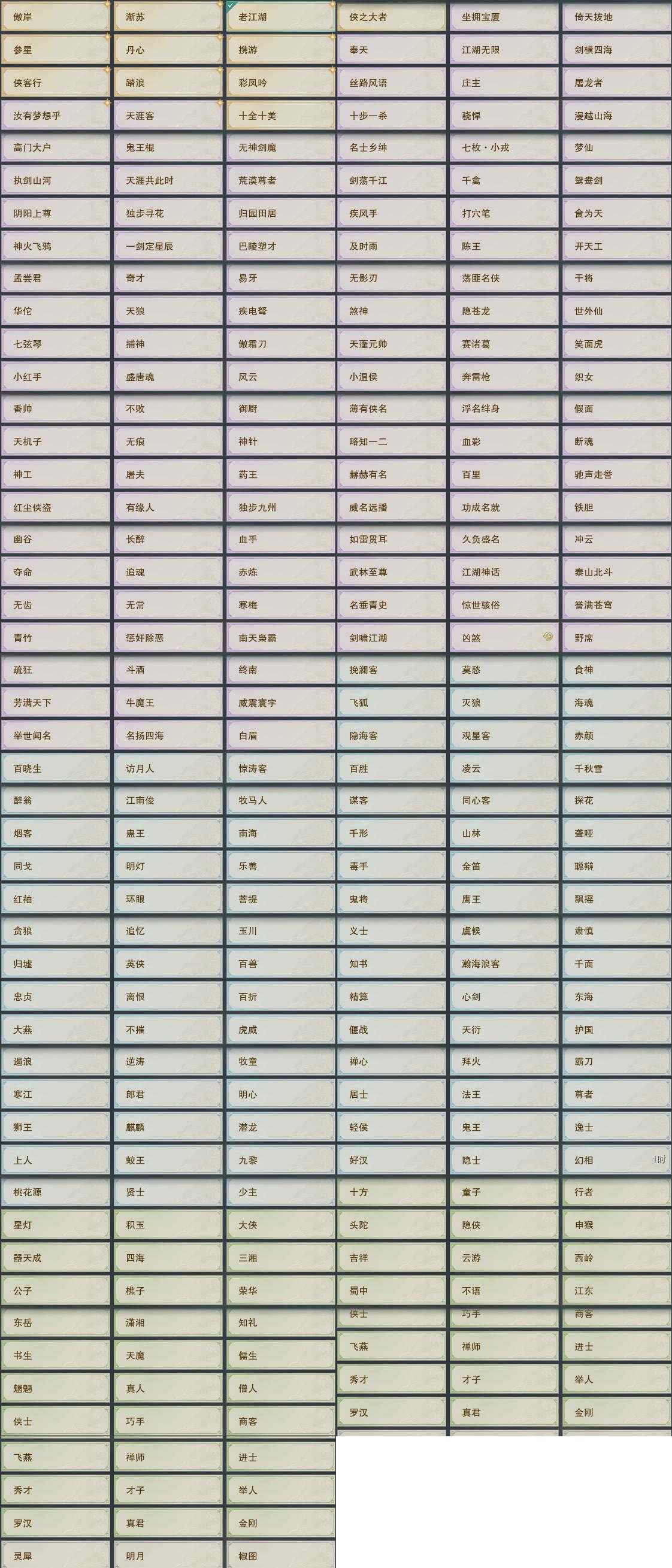 【奇珍】49个[枫林酒, 红衣歌, 归乡路, 胜负局, 孩童书, 清茗经, 捉妖记, 至尊宝, 石敢当, 稚子心]