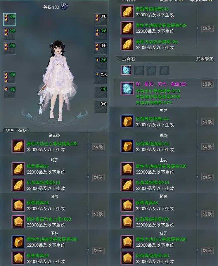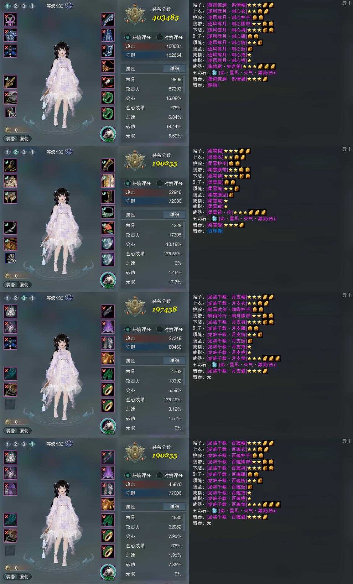 【装备】130级,毒经PVP403485,装备二190255,装备三197458,装备四190255