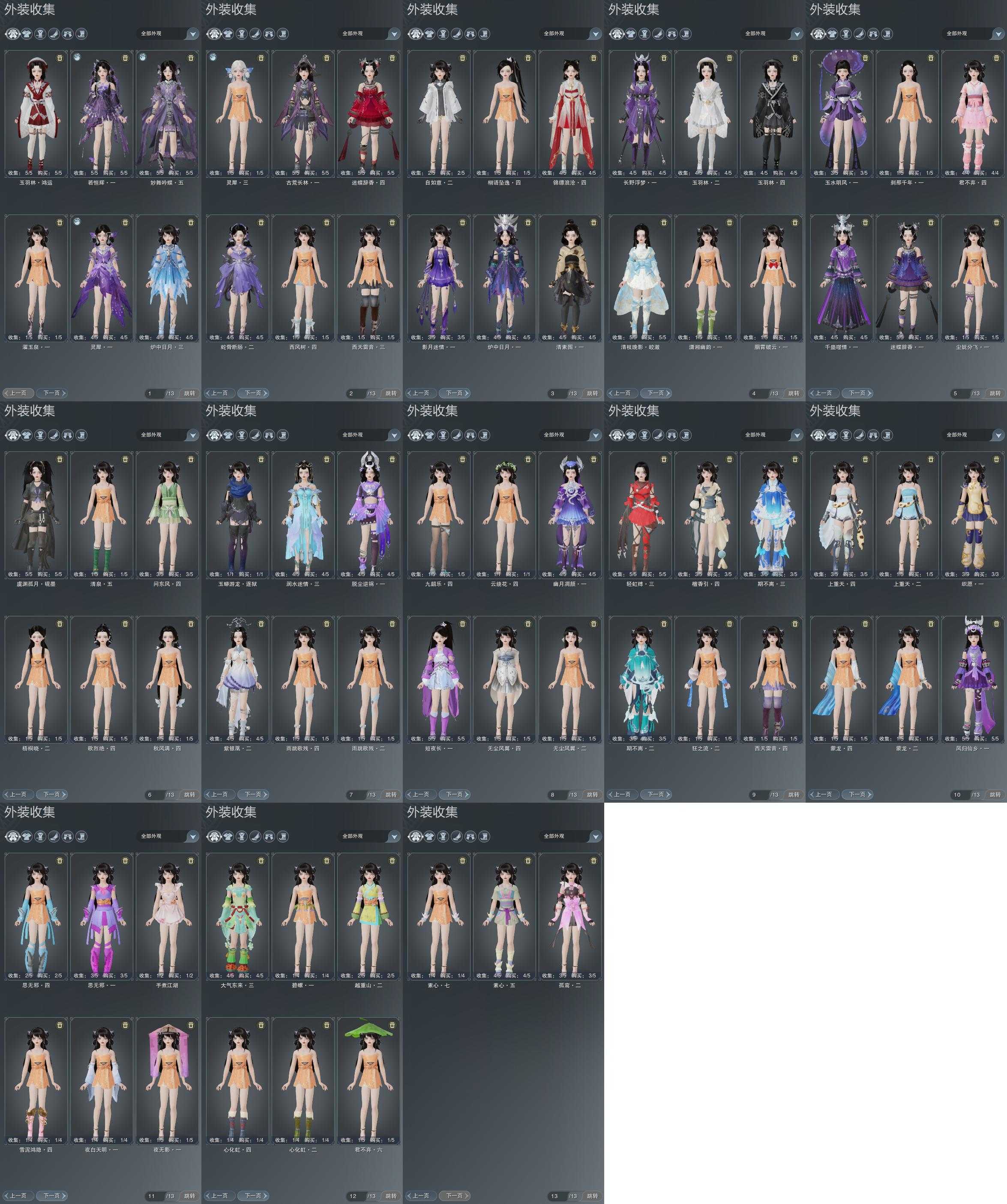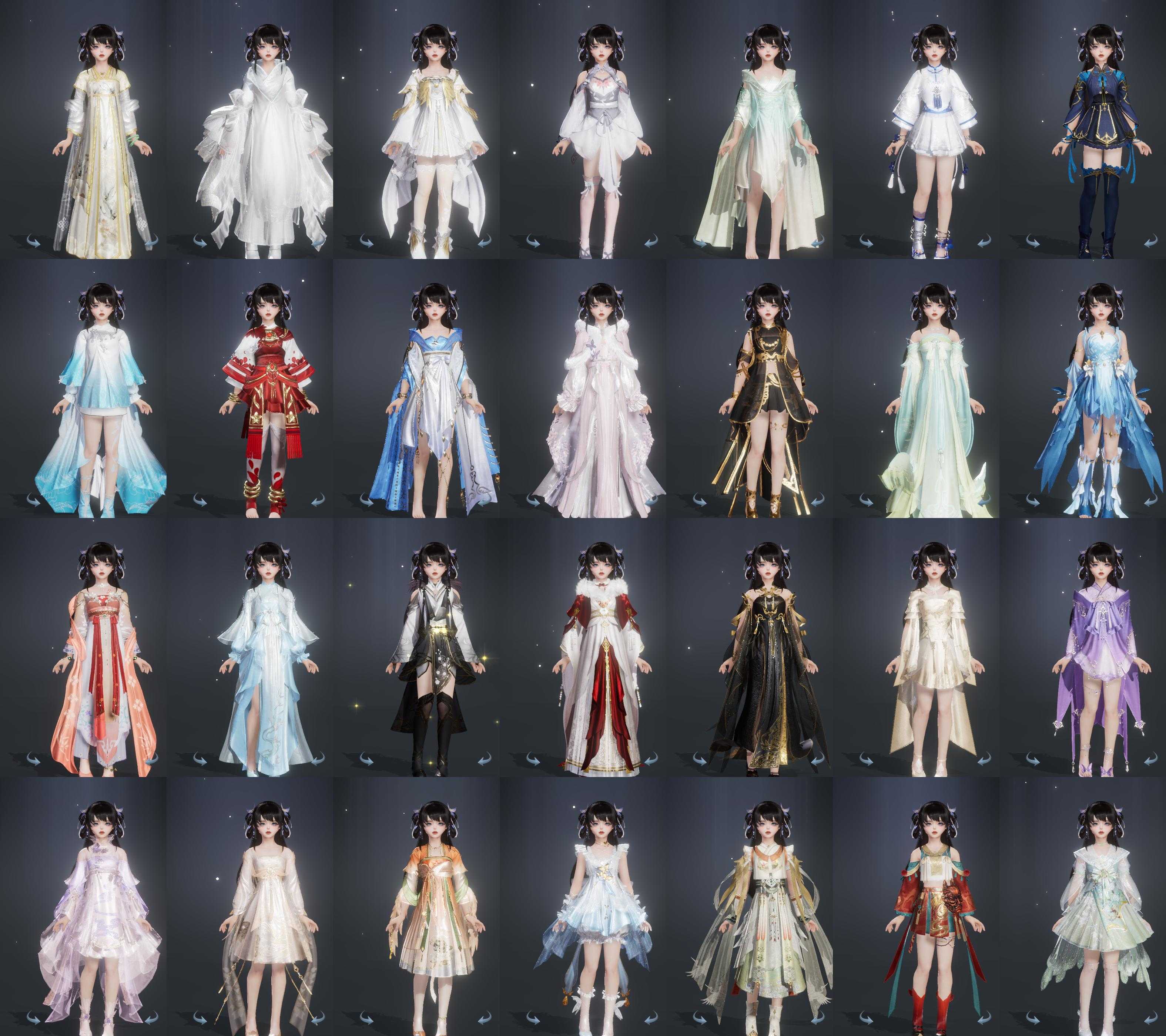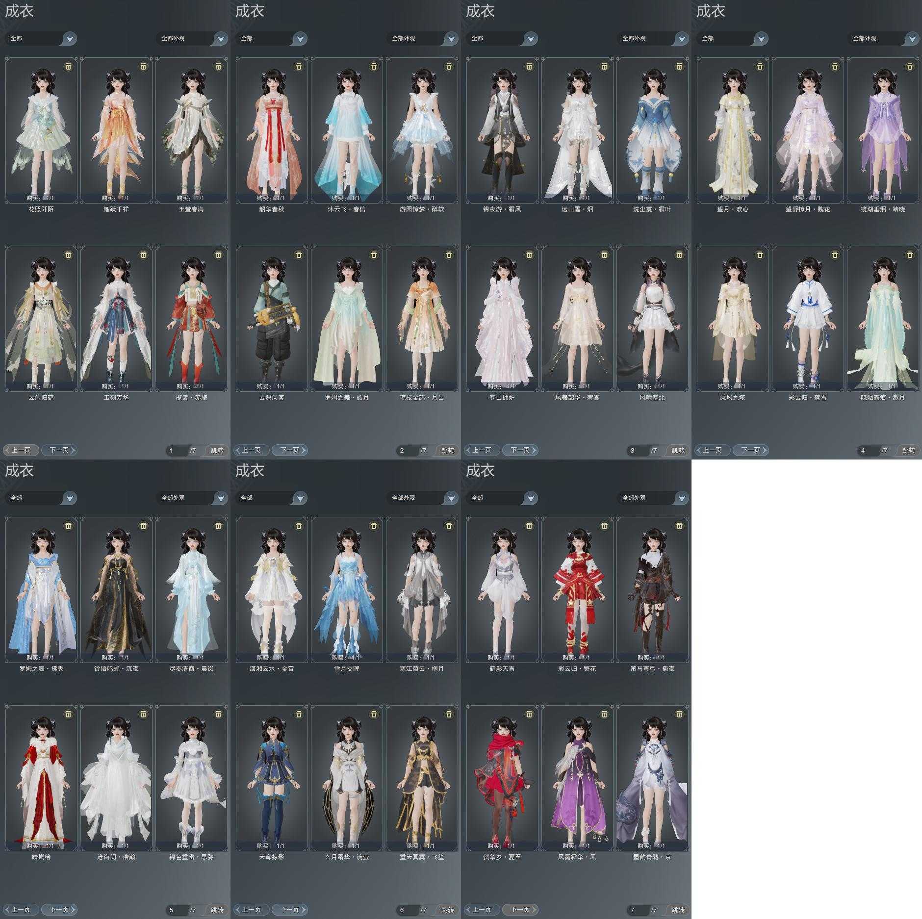 单盒成衣:[重阳绿盒衣, 雪月盒衣, 二代乘风衣, 金琼枝衣, 蓝游园衣, 踏青盒衣]