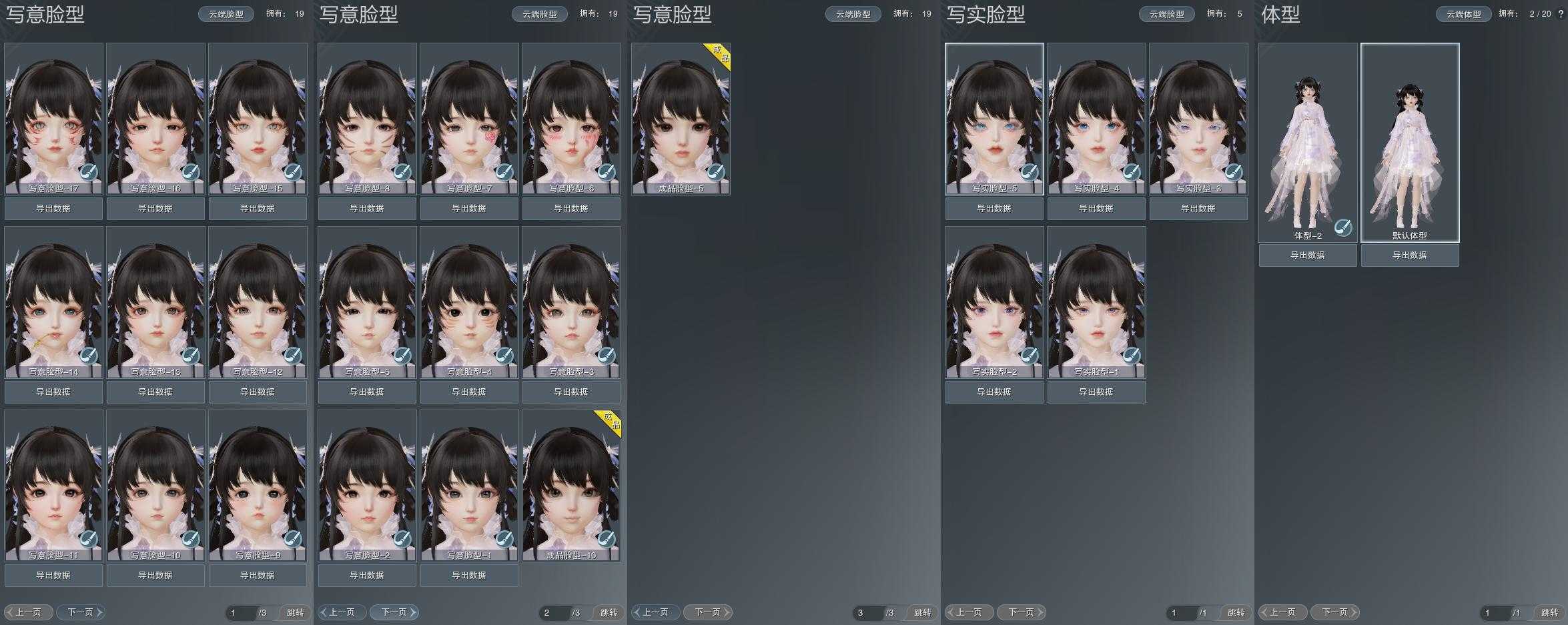 【捏脸】写意脸型19个,写实脸型5个,体型2个