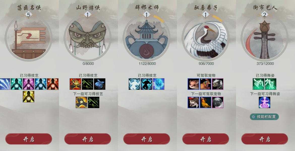 【奇遇】4个[雪山恩仇, 平生心愿, 扶摇九天, 炼狱厨神]