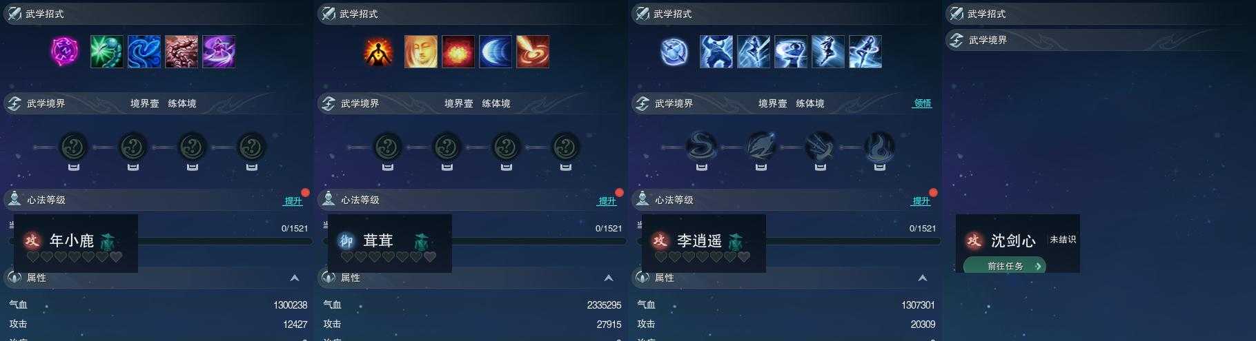 【同伴】年小鹿1级境界壹,茸茸1级境界壹,李逍遥1级境界壹,沈剑心级