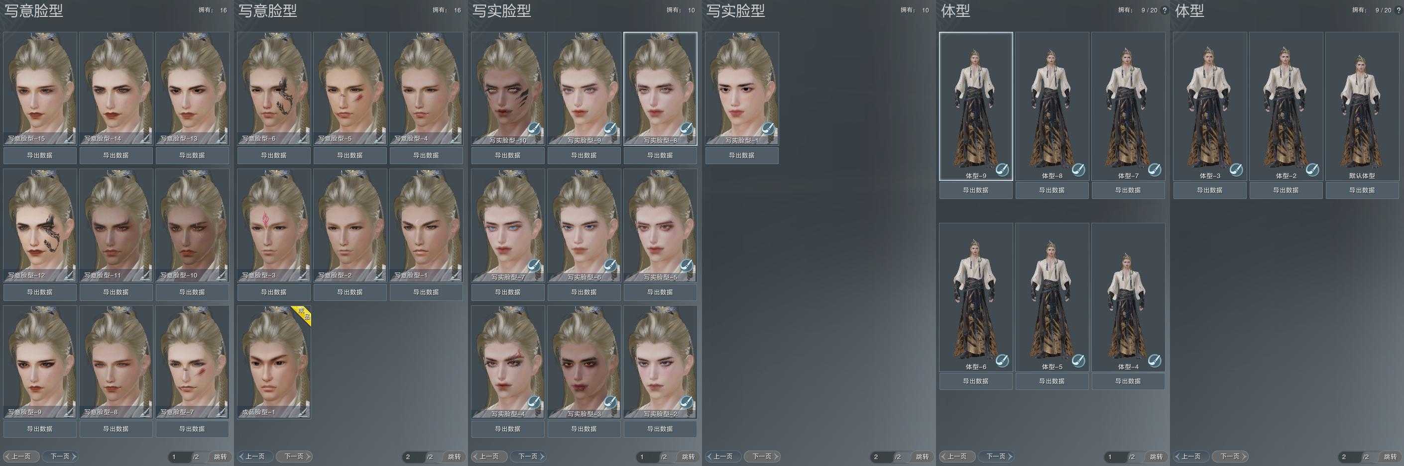 【捏脸】写意脸型16个,写实脸型10个,体型9个