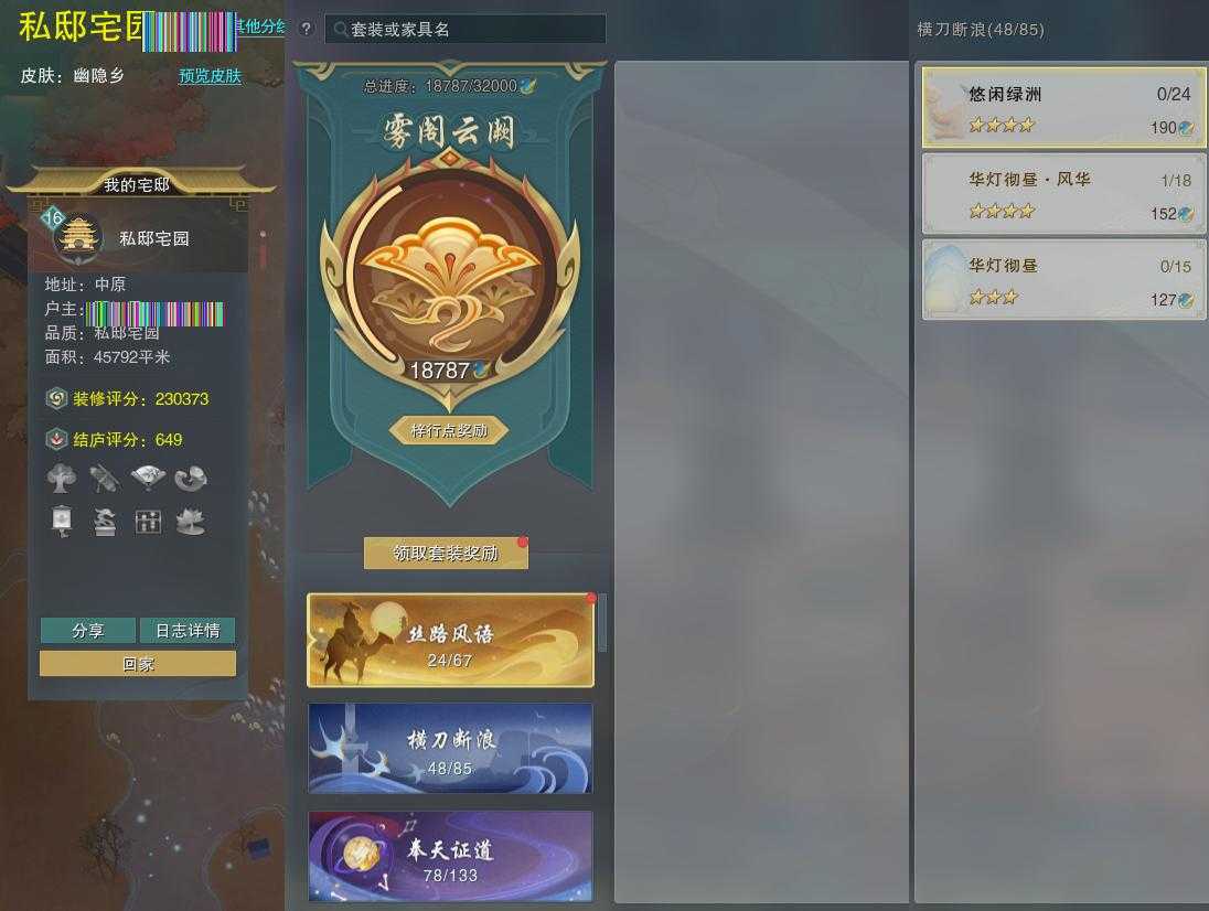 【家园】房屋等级16,私邸宅园,梓行点18787