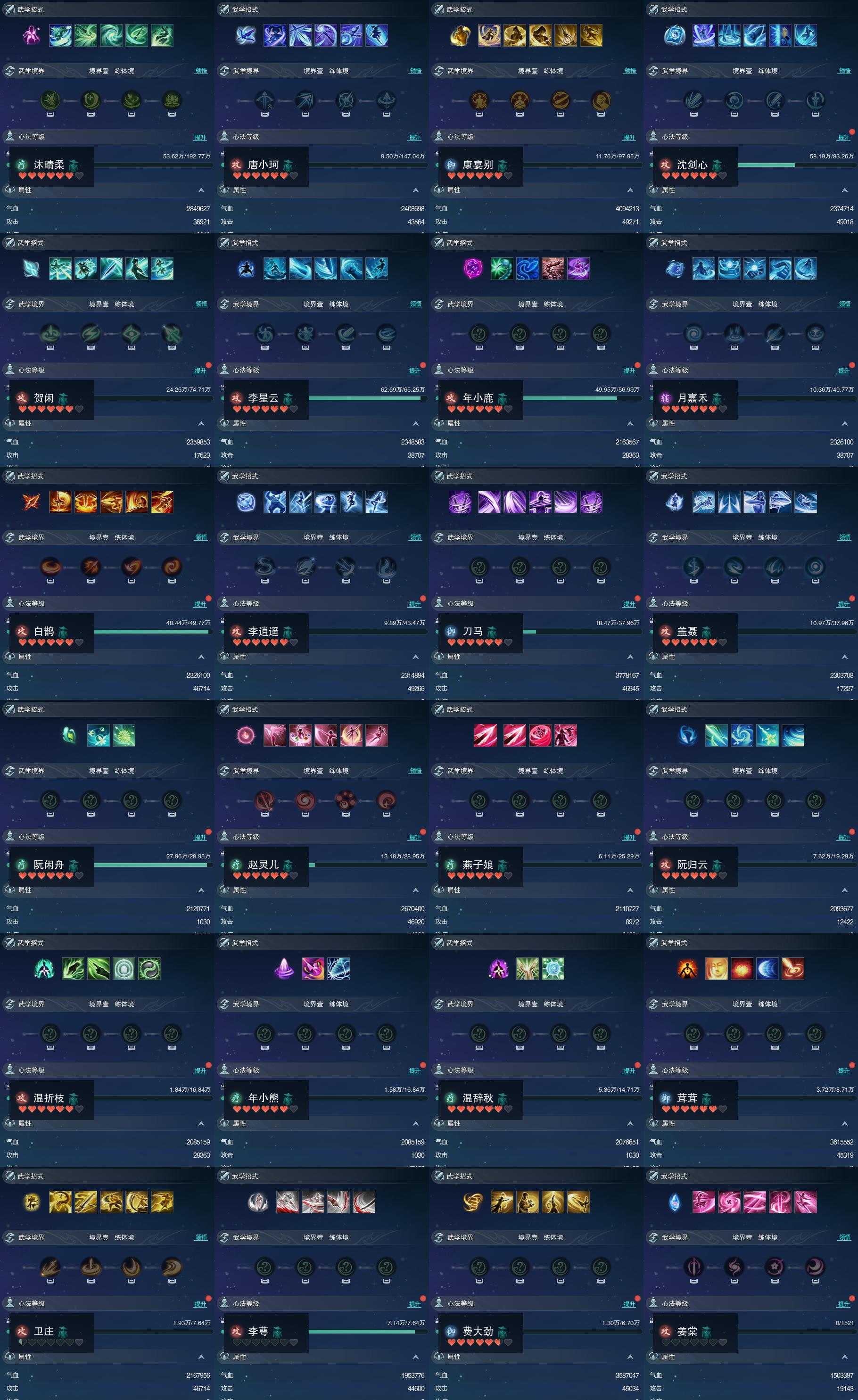 【同伴】沐晴柔89级境界壹,唐小珂87级境界壹,康宴别84级境界壹,沈剑心84级境界壹,贺闲志82级境界壹,李星云81级境界壹,年小鹿80级境界壹,月嘉禾79级境界壹,白鹊志79级境界壹,李逍遥78级境界壹,刀马志77级境界壹,盖聂志77级境界壹,阮闲舟75级境界壹,赵灵儿75级境界壹,燕子娘74级境界壹,阮归云72级境界壹,温折枝71级境界壹,年小熊71级境界壹,温辞秋70级境界壹,茸茸志66级境界壹,卫庄志65级境界壹,李萼志65级境界壹,费大劲64级境界壹,姜棠志1级境界壹