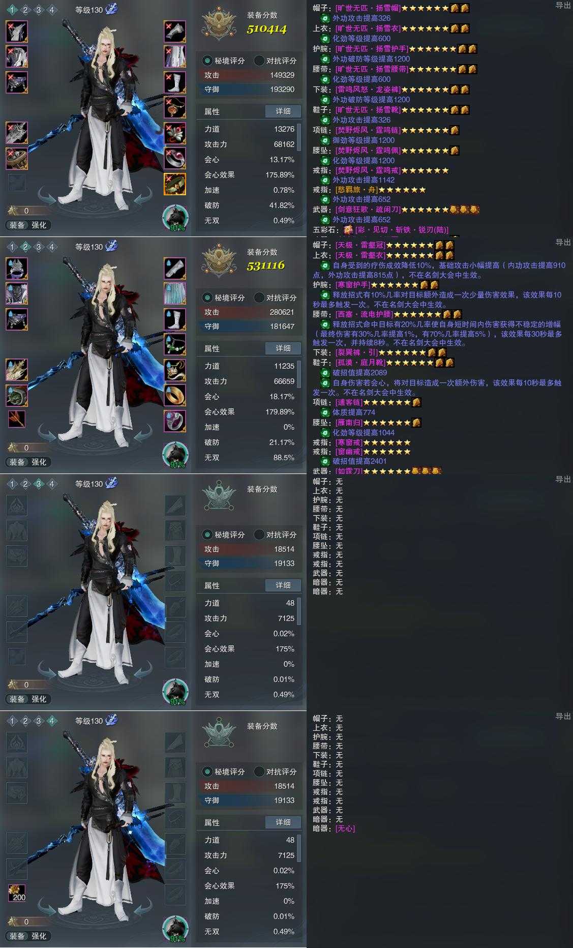 【装备】130级,北傲诀PVP510414,北傲诀PVE531116,装备三0,装备四0