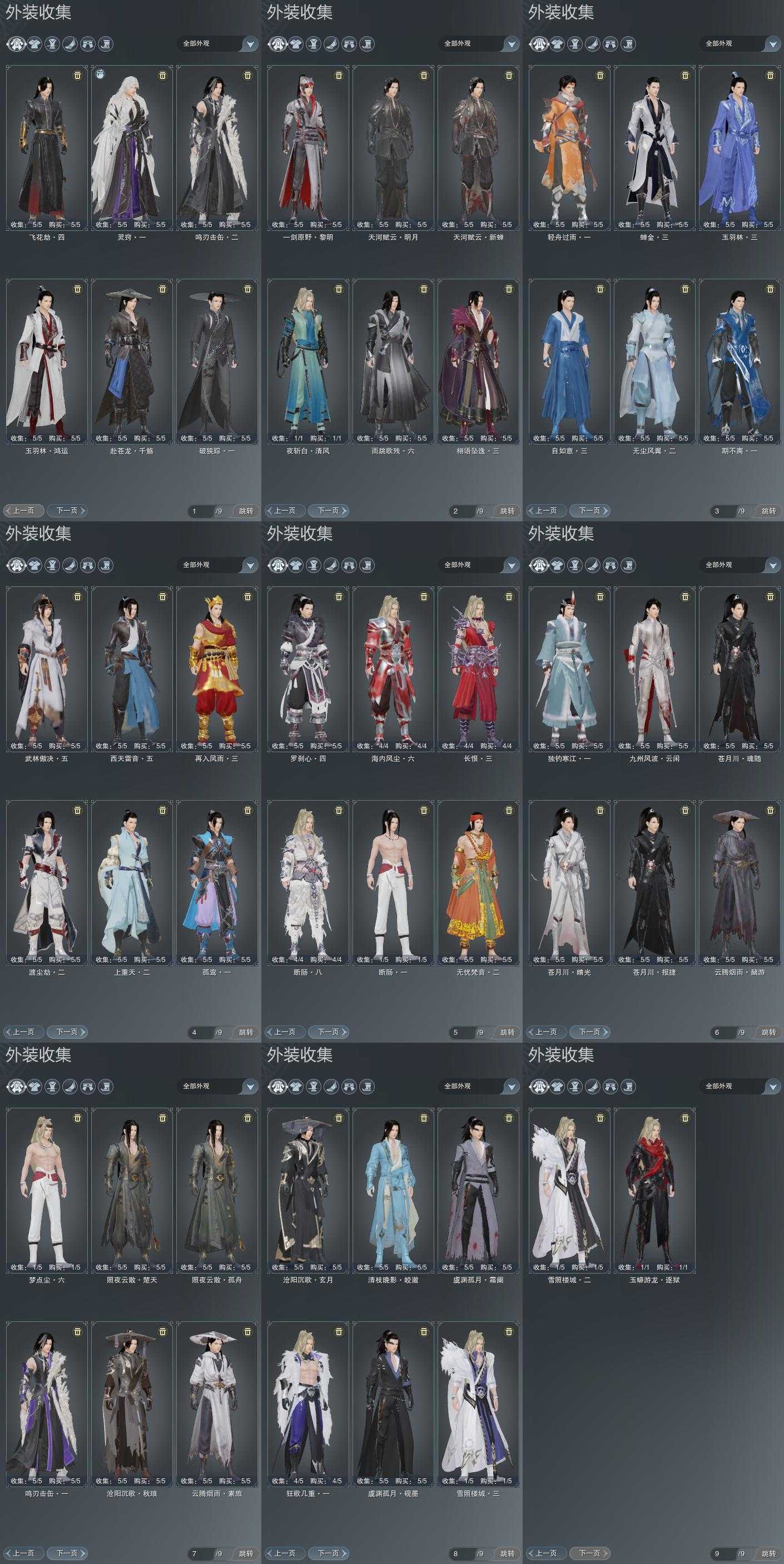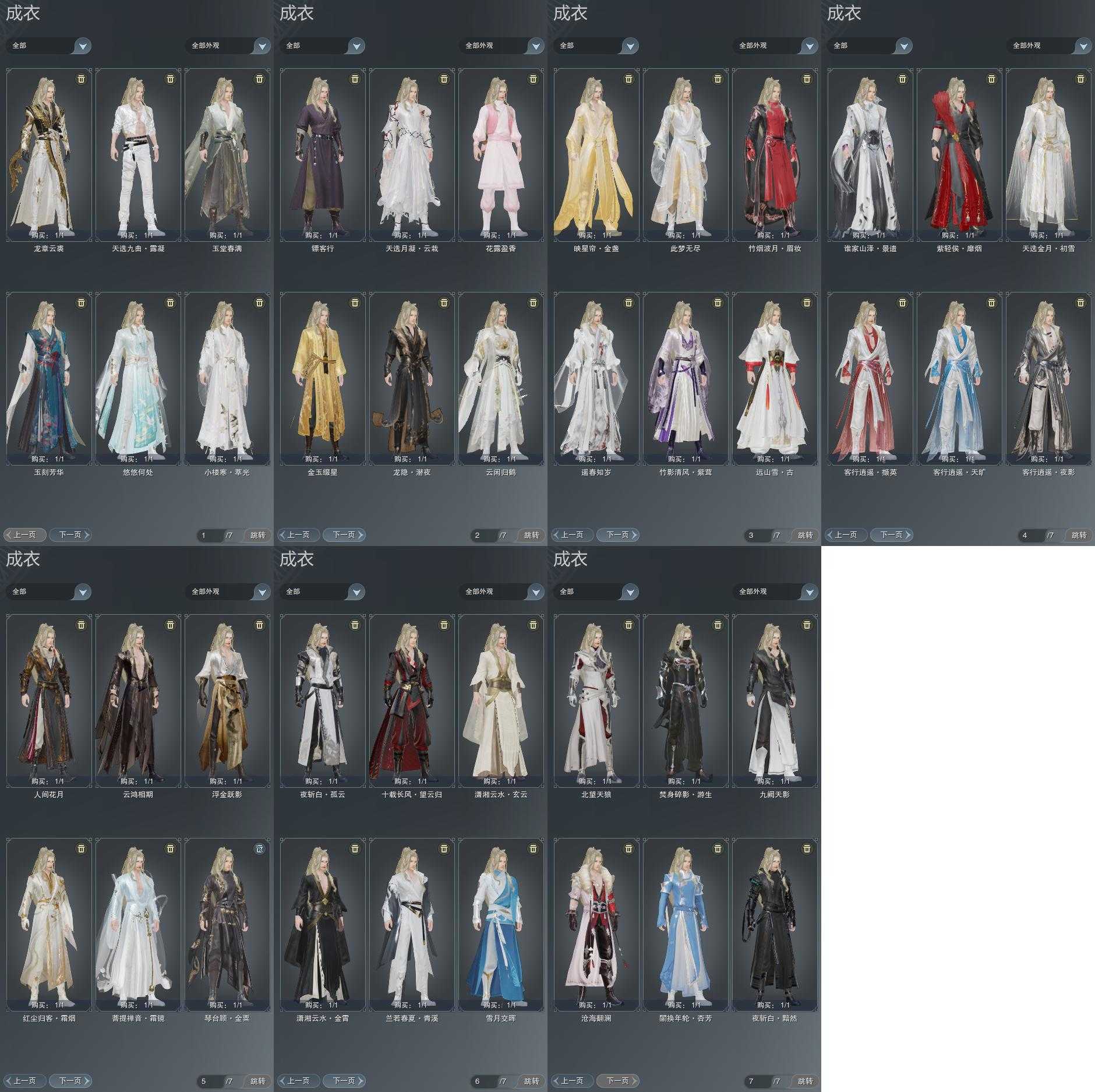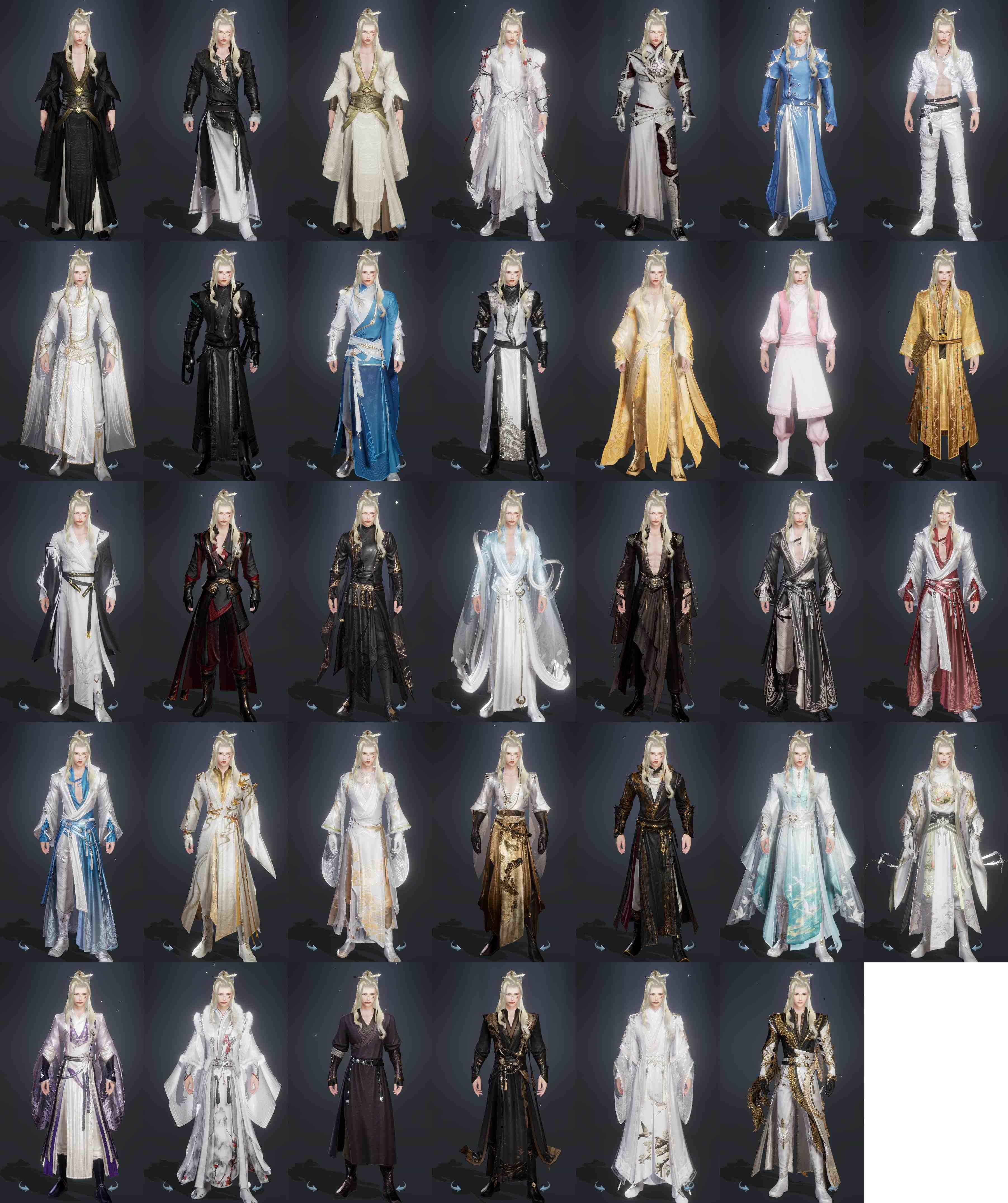 限时限量:[十三万资历衣, 兰若青溪, 烟花套, 琴台顾金粟, 十二周年工作服, 客行逍遥夜影, 客行逍遥撷英, 客行逍遥天旷, 十三周年成衣, 十四周年工作服, 云闲归鹤]