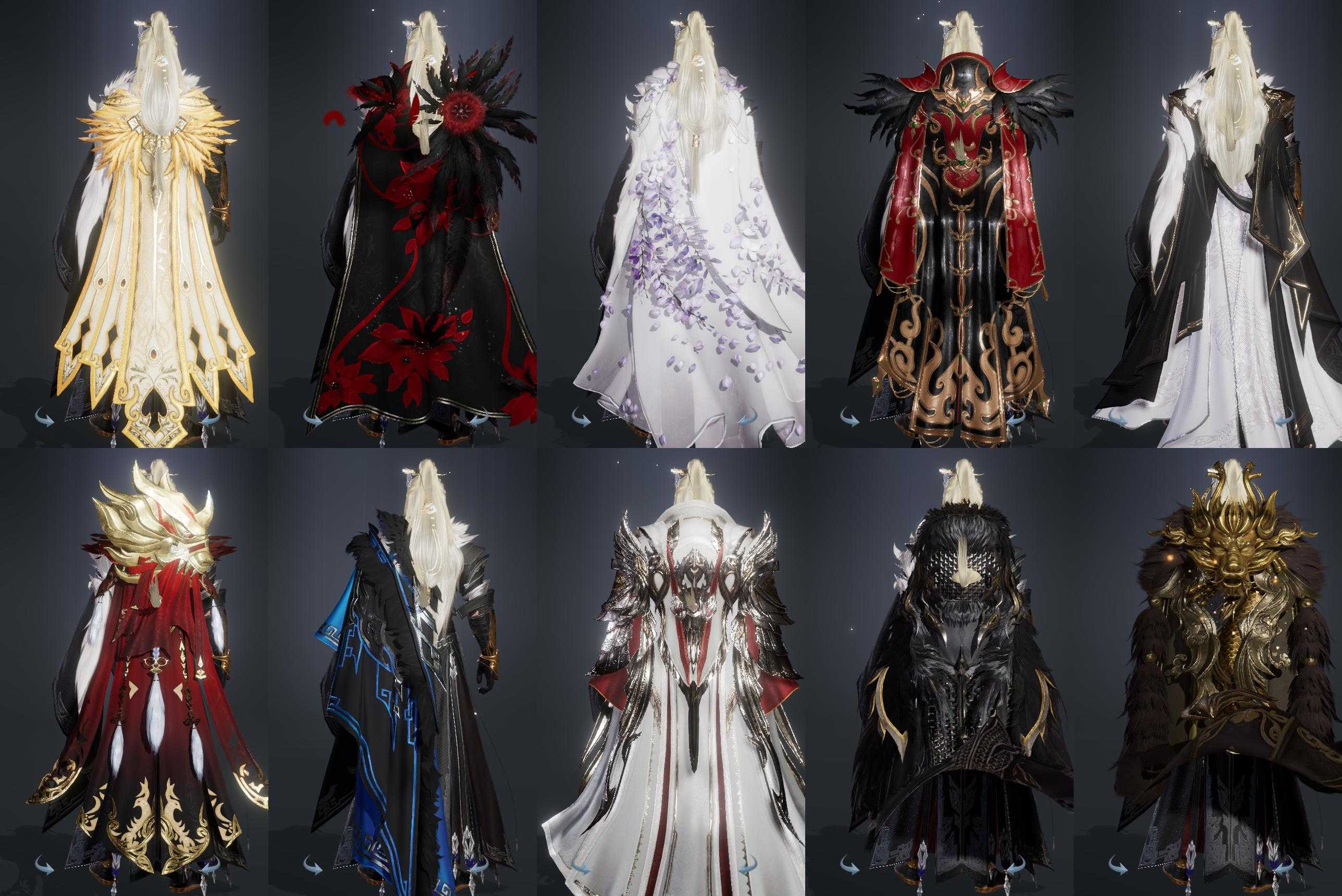 【披风】13个,[7W资历披风, 衍天预热披风, 熔金烈风, 一代浩气, 黑盒子披风, 14W资历披风, 三山披风, 奇遇披风, 白盒子披风, 龙头]
