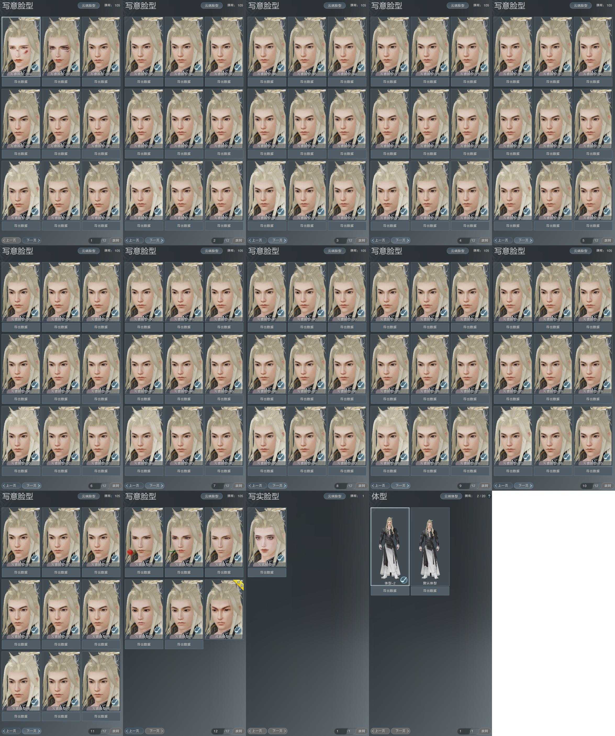 【捏脸】写意脸型105个,写实脸型1个,体型2个