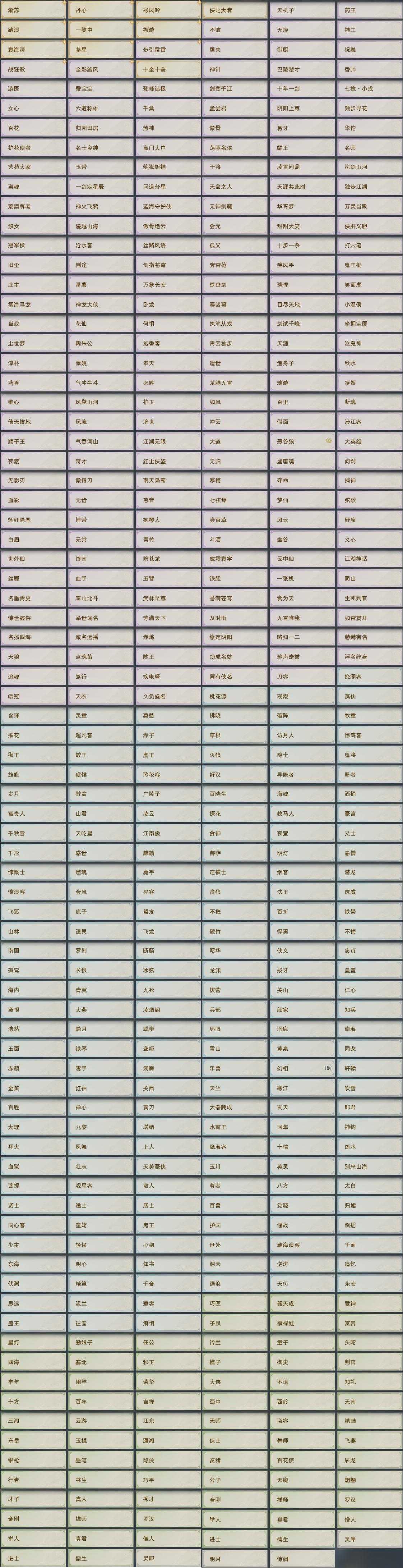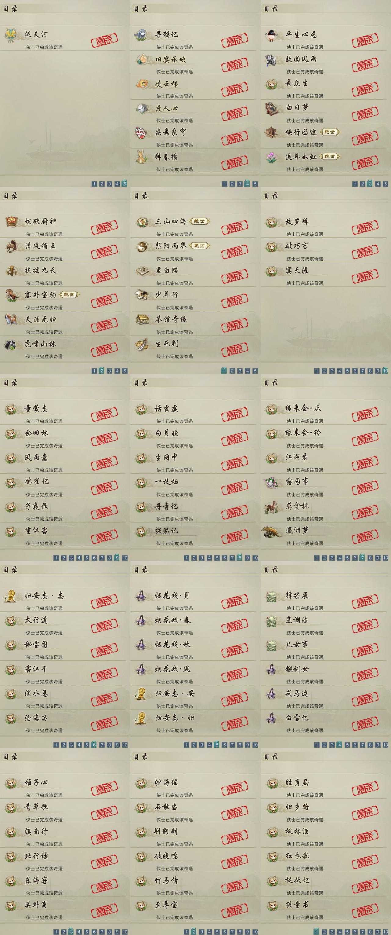 【奇遇】25个[白日梦, 天涯无归, 三山四海, 阴阳两界, 平生心愿, 黑白路, 塞外宝驹, 虎啸山林, 少年行, 故园风雨, 扶摇九天, 舞众生, 流年如虹, 清风捕王, 寻猫记, 侠行囧途, 茶馆奇缘, 庆舞良宵, 生死判, 凌云梯, 炼狱厨神, 度人心, 旧宴承欢, 泛天河, 拜春擂]