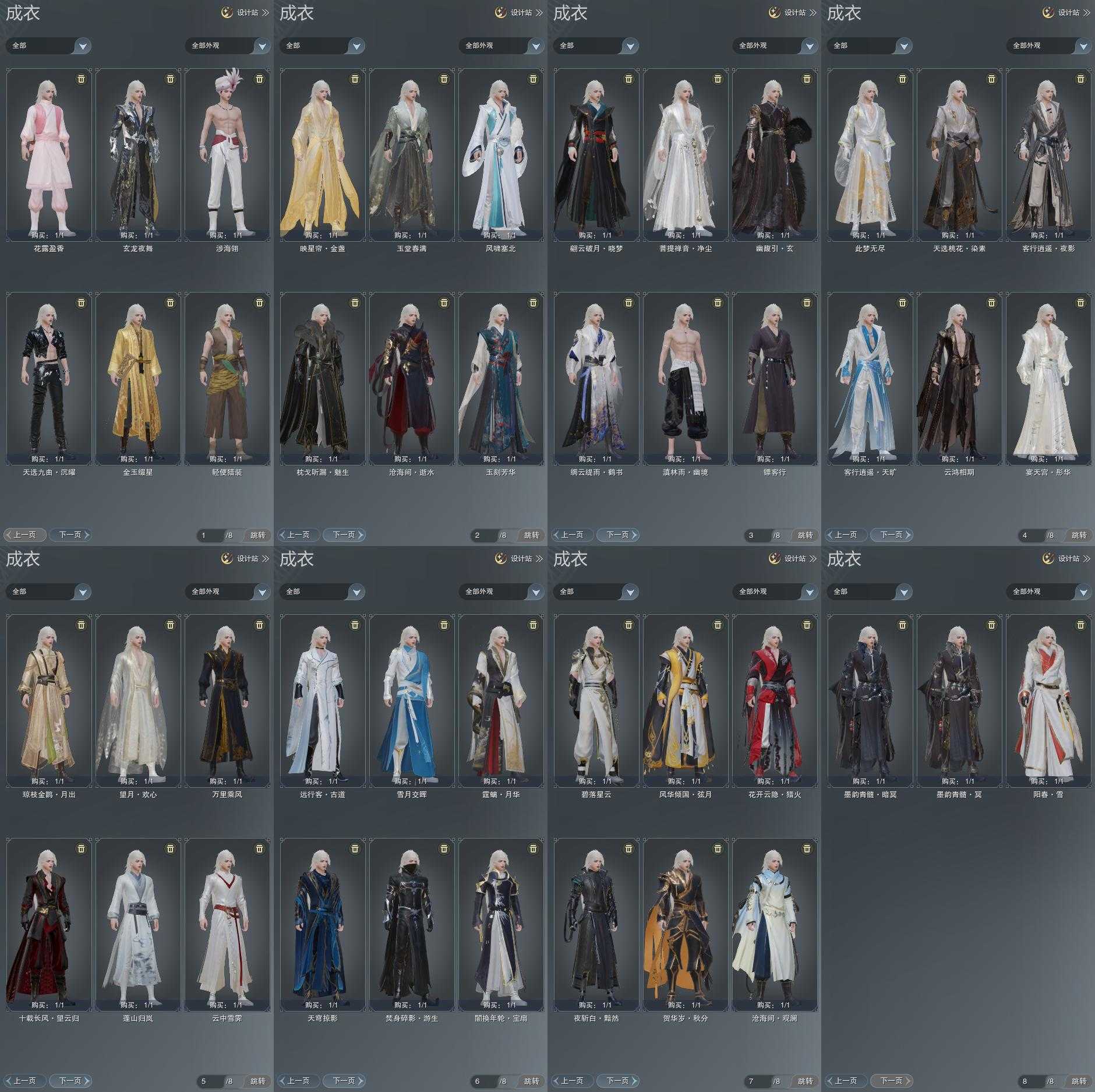单盒成衣:[白腿盒衣, 黑翩云衣, 金琼枝衣, 白狮盒衣, 黑幽馥衣]