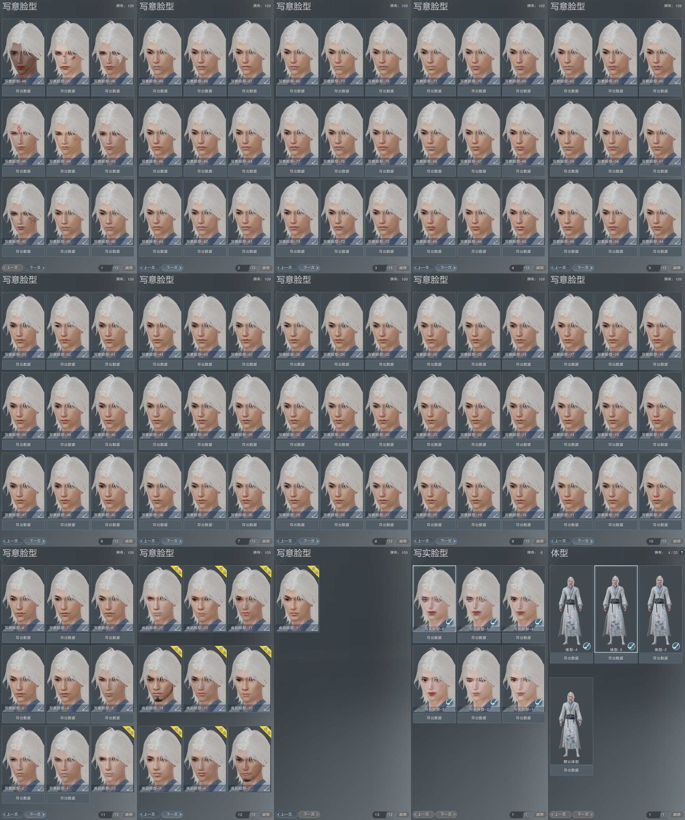 【捏脸】写意脸型109个,写实脸型6个,体型4个